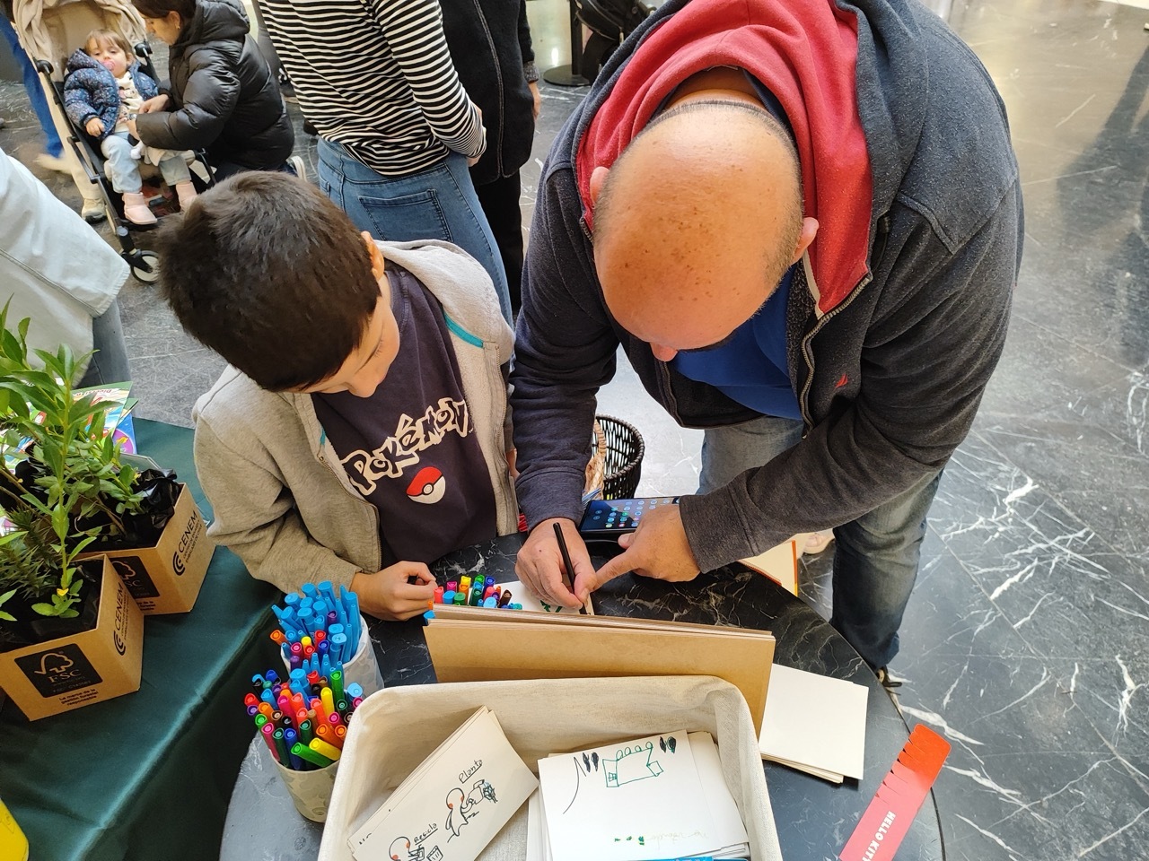 Además, padres e hijos participaron en una entretenida actividad en la que recibieron bolsas de papel con motivos infantiles para pintar, junto a libros para dibujar, lápices, juegos de mesa y otros útiles educativos. Todo ello con el objetivo de promover, en familia, el aprendizaje y la conciencia ambiental.