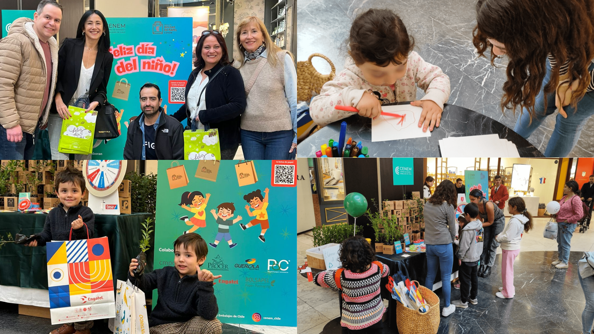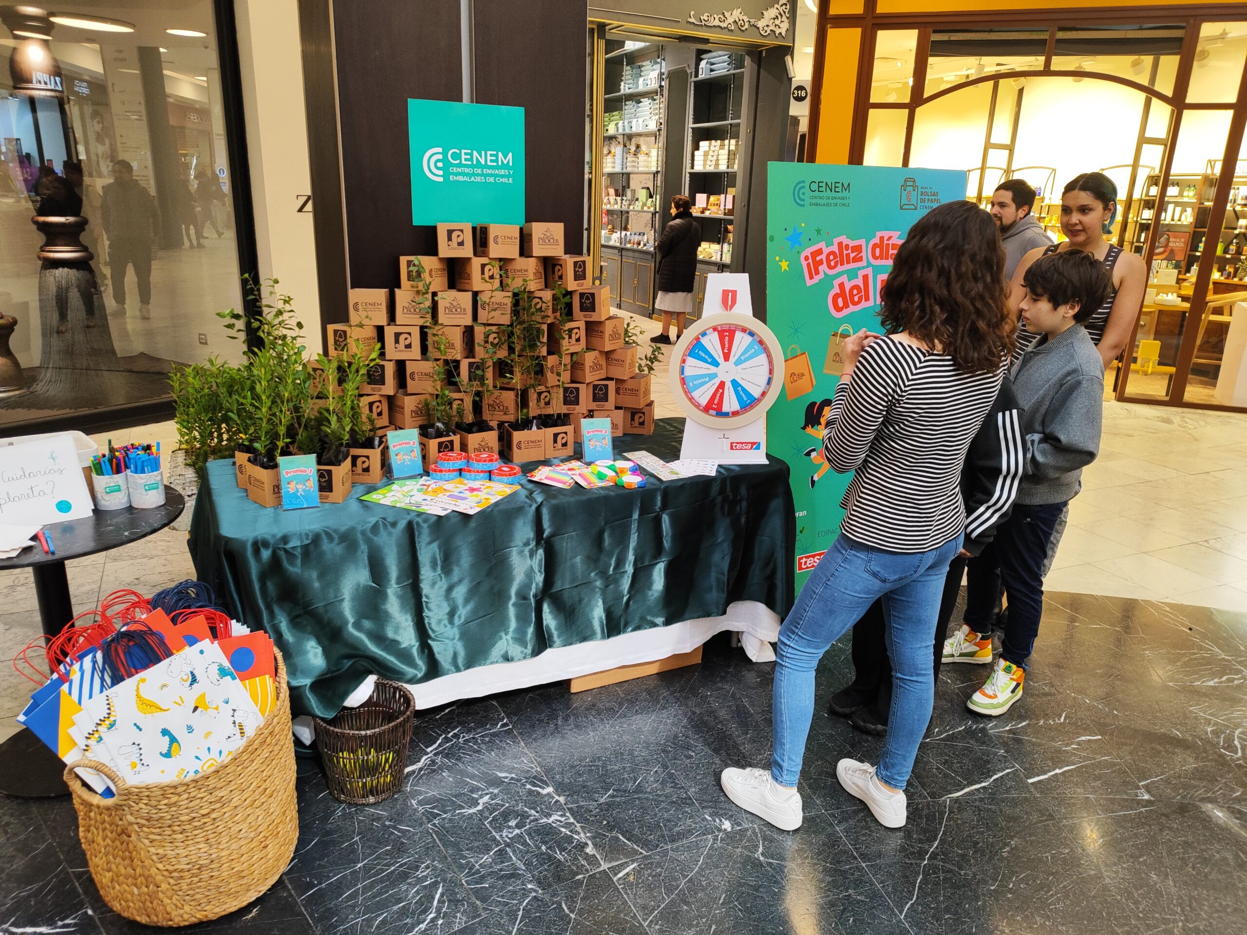 El pasado domingo 10 de agosto, la Mesa Técnica de Bolsas de Papel de CENEM realizó una significativa activación en Parque Arauco en conmemoración del Día de la niñez. Durante la actividad, se entregaron más de 240 árboles nativos, entre ellos Roble, Laurel y Araucarias, especies chilenas en peligro de extinción. Estos árboles fueron entregados a niños y niñas que participaron en diversos juegos interactivos, incentivando el compromiso de cuidarlos para preservar nuestro patrimonio natural.